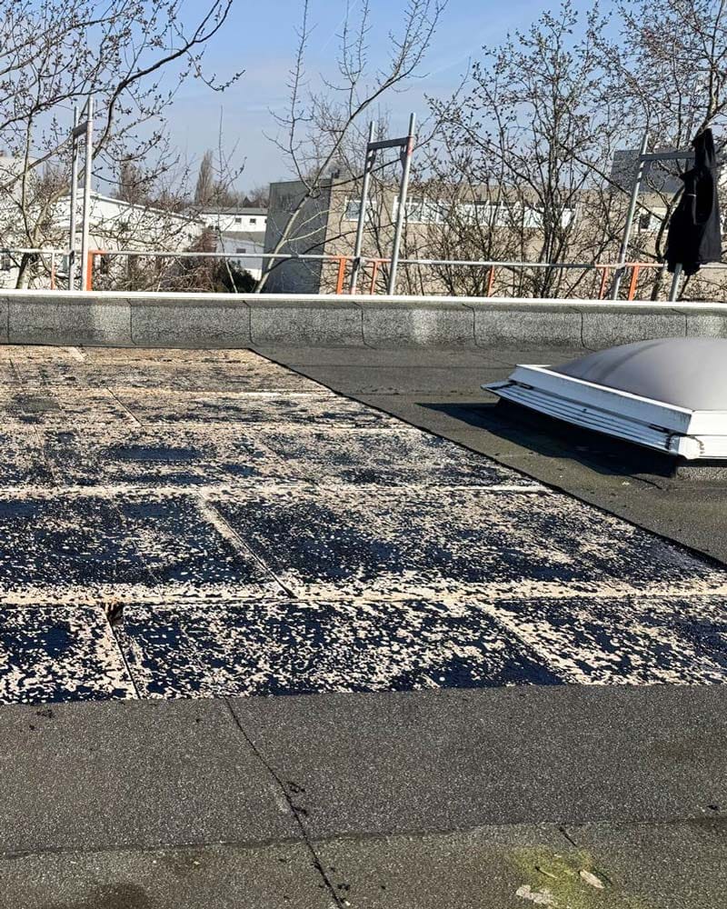 Dabei ging es nicht nur um eine neue Abdichtung – wir haben die vorhandenen Schichten fachgerecht zurückgebaut, Untergründe neu vorbereitet und mit mehreren Lagen Bitumen aufgebaut. Die Herausforderung: große Flächen, komplexe Anschlüsse und ein straffer Zeitplan.